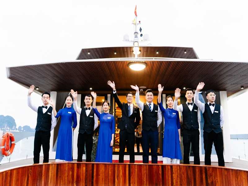 Upon arrival at Halong International Port, the Halong Symphony crew warmly welcomes you aboard, ensuring a professional and friendly start to your exploration of Halong Bay.