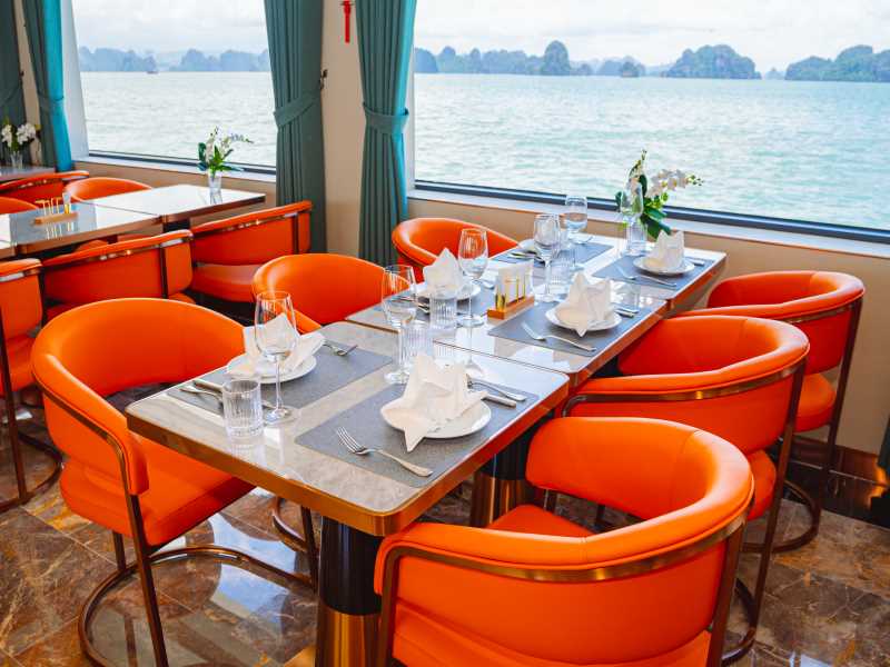 11h15: Enjoy a delightful lunch at the 5-star restaurant on Leona Cruise as you glide past thousands of majestic limestone karsts in the heart of the World Heritage Site.