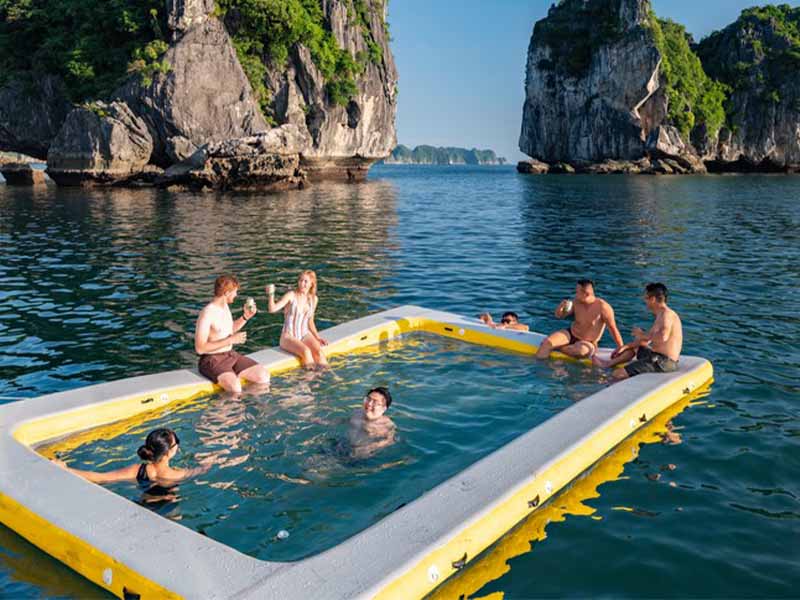 Serenity Grandeur Cruise is a 6-star masterpiece inspired by a "Precious Pearl," offering a modern European-style escape across the pristine waters of Lan Ha Bay. This elite day cruise features a panoramic swimming pool, the bay’s longest water slide, and a luxury rooftop bar for ultimate entertainment. Guests will embark on an adventurous 1D journey to Cat Ba Island, exploring the ancient Viet Hai Village by bicycle and enjoying the exhilarating aquatic activities in the heart of the heritage site.